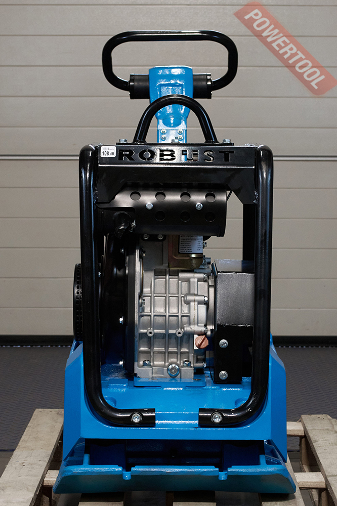 - Сбалансированное сочетание веса плиты и мощности двигателя даёт оптимальную силу уплотнения, которая равна 30 кН.