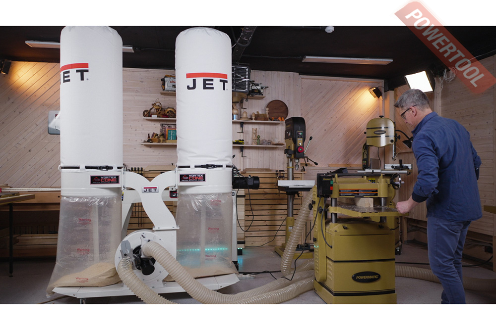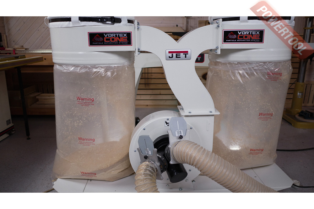 Вытяжная установка стружкоотсос JET DC-1900 A 380V - высокопроизводительная вытяжная установка со сдвоенными фильтрами и накопителями, поставляется с трёхфазным двигателем большой мощности. Разветвитель аспирационного патрубка позволяет подключать при помощи 100-миллиметровых рукавов до трёх точек пылесбора или, если требуется, один единственный рукав диаметром 150 или 200 мм. «Улитка» и крыльчатка выполнены из стали и не боятся повреждений сучками или щепой, которые попадаются в отходах деревообработки.