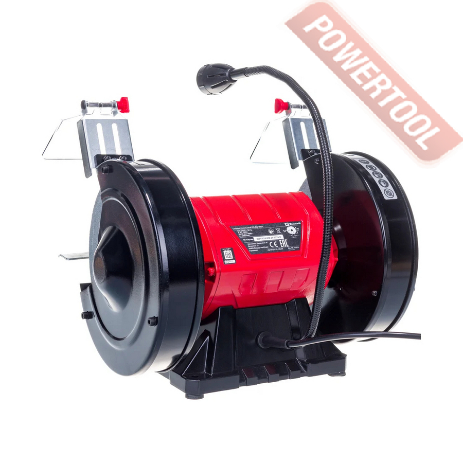 Заточной станок универсальный с двумя кругами, мощность 400 Вт, напряжение 220 В, шлифкруг 200х32х25 мм, число оборотов 2980 об/мин, защитных экран, подсветка рабочей зоны, габариты ДхШхВ 395х293х295 мм, вес 12 кг, шлифовальный круг 200х32х25 мм зернистость К36, шлифовальный круг 200х32х25 мм зернистость К60.