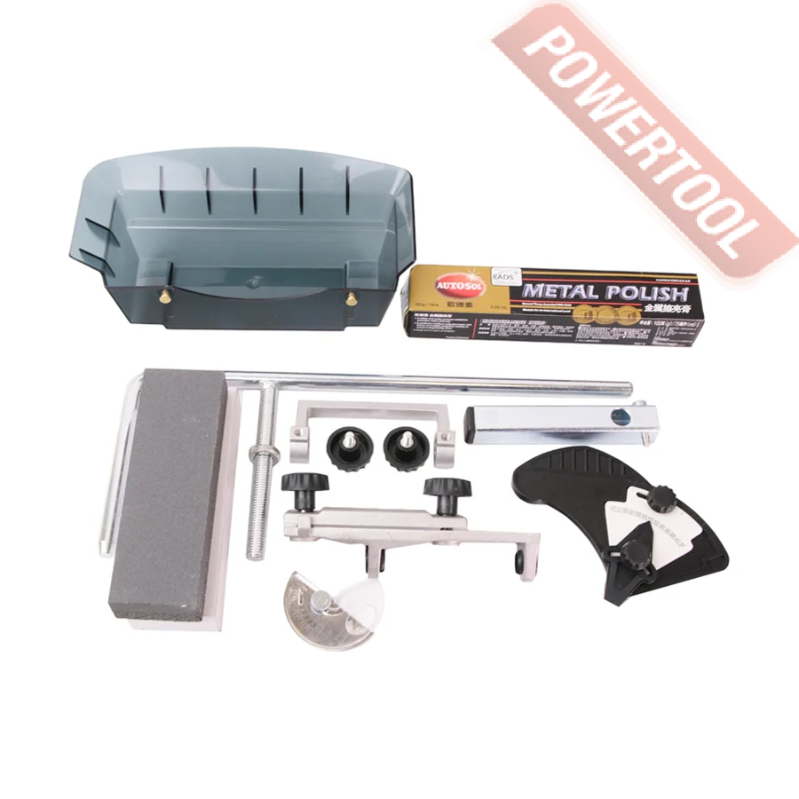 - В комплекте к электрическому станку идут дополнительные инструменты и приспособления для качественной заточки режущего инструмента, которые обеспечивают стабильную фиксацию и точное, равномерное оттачивание всего лезвия.